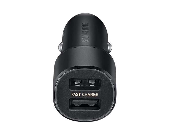 Cargador Carro Dual 15W La salida de puerto USB doble de carga rápida te permite cargar sobre la marcha hasta dos dispositivos al mismo tiempo. Además, su indicador de luz LED azul redondo te permite saber si tu dispositivo se está cargando adecuadamente o no mientras conduces. Cargador de automóvil, guía de inicio rápido, USB-A para dos dispositivos.Dimensiónes 26 x 67.1 x 26 mm.